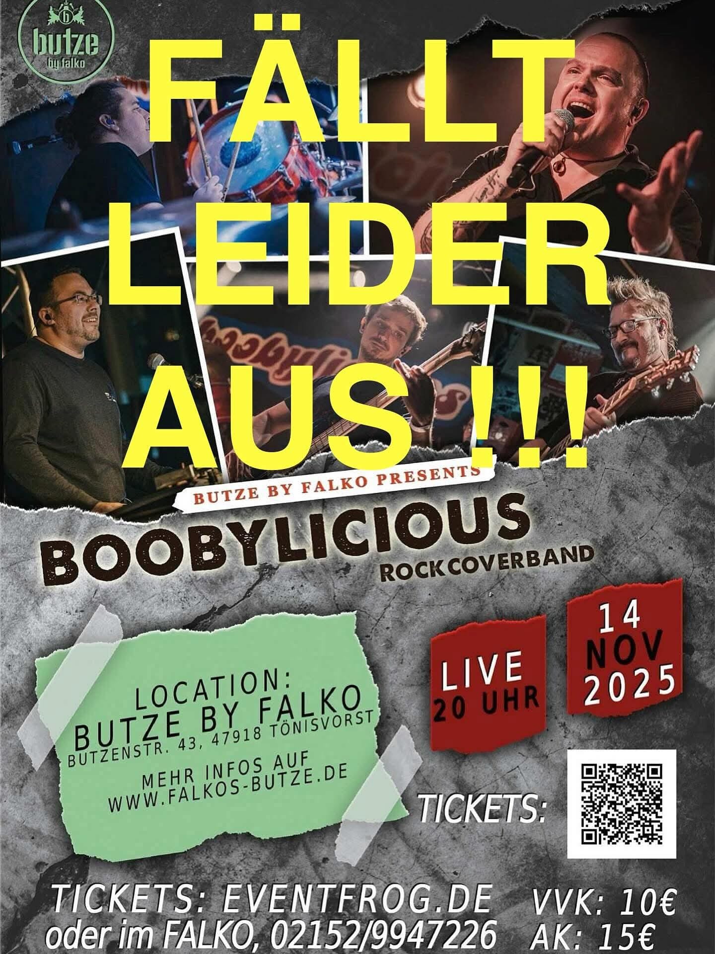 Butze Butzenstr. 43, Tönisvorst, NRWEs tut uns wirklich sehr leid. Aber aufgrund eines tragischen familiären Ereignisses innerhalb der Band müssen wir das Konzert am kommenden Freitag in der Butze in Tönisvorst absagen. Ich denke, jeder hat Verständnis für diesen Weg… Die Familie geht vor, deshalb stehen die Band als auch die Butze geschlossen hinter dieser Entscheidung.
